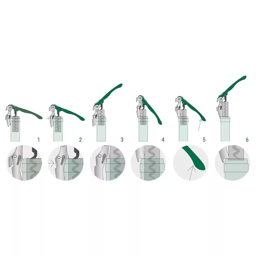 Nuevo mecanismo patentado de descorche por sistema de deslizamiento de doble pivote.